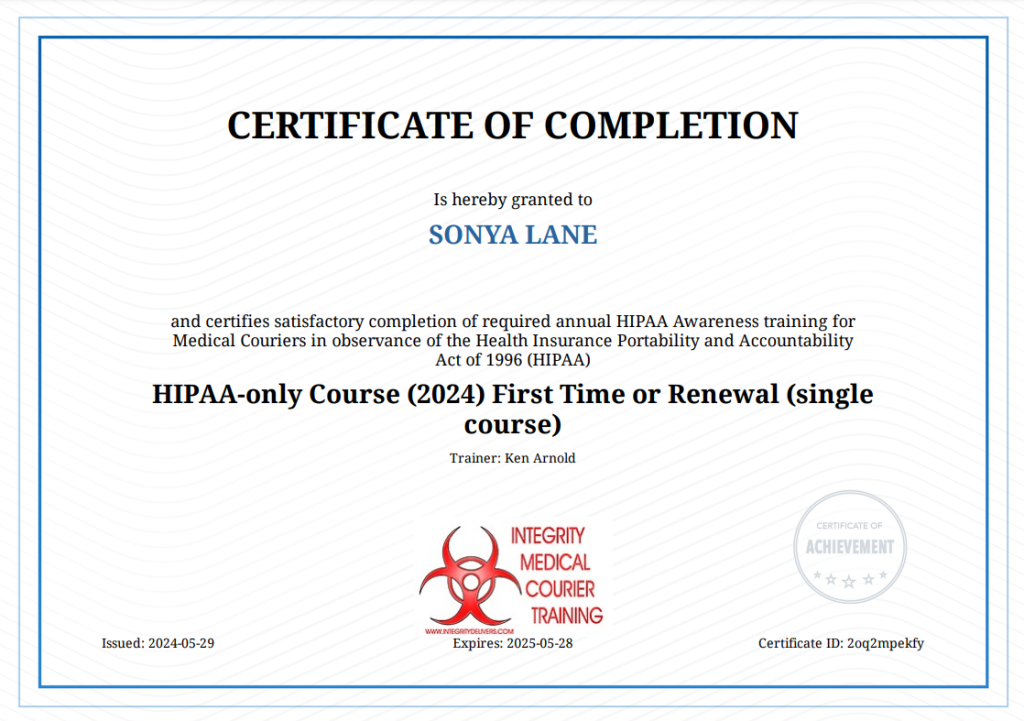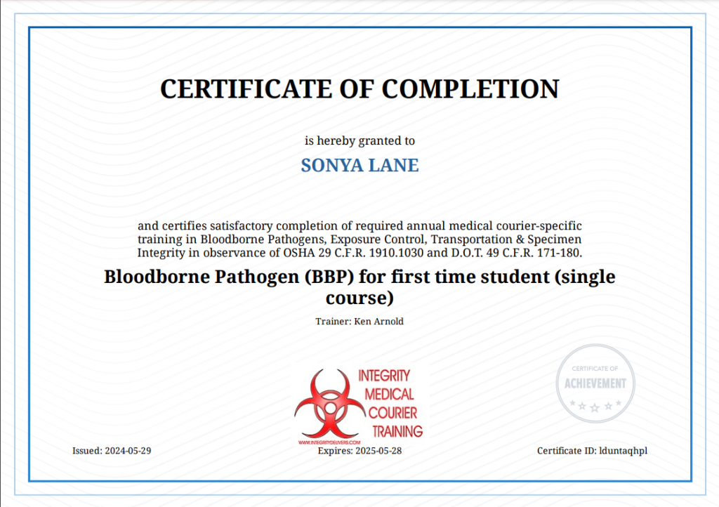 - Certifications: HIPAA and Bloodborne Pathogen (BBP)